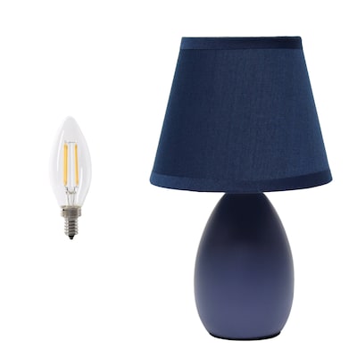 Simple Designs 9.45" Mini Egg Oval Ceramic Table Lamp with Matching Shade, LED Bulb Included, Blue