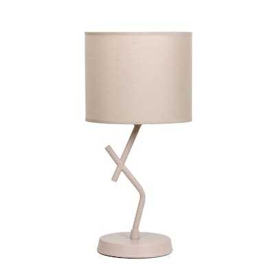 Simple Designs 17.13" Metal and Modern Abstract Table Lamp with Drum Fabric Shade, Bedroom, Office, Living Room, Dorm, Side Table, Light Beige