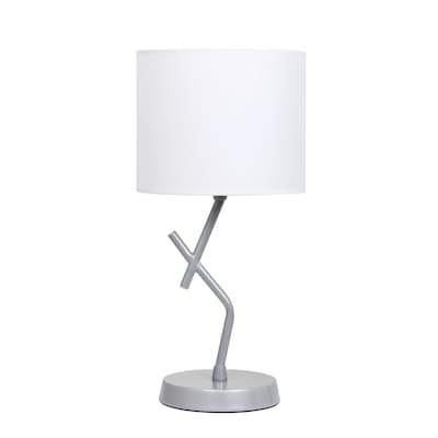 Simple Designs 17.13" Metal and Modern Abstract Table Lamp with Drum Fabric Shade, Bedroom, Office, Living Room, Dorm, Side Table, Silver