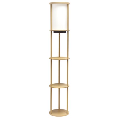 Simple Designs Etagere Organizer Storage 62.5" Floor Lamp with 2 USB Charging Ports and 1 Charging Outlet, Tan (LF2010-TAN)