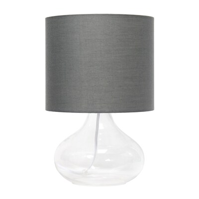 Illuminate your living space with this simple yet stylish glass table lamp. The clear glass raindrop shaped base and gray fabric drum shade is the perfect blend of charm to give your home a contemporary and modern upgrade. Perfect for living rooms, bedrooms, kids and teens, college dorms, apartments, nurseries, or offices.