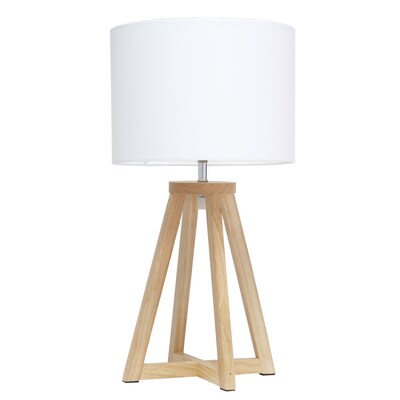 Add a touch of simplicity to your home with this contemporary lamp. The soft, white fabric shade compliments the geometric natural wood base for a clean, simple look. Perfect lamp for a bedroom, living area, office, kid's room or college dorm.