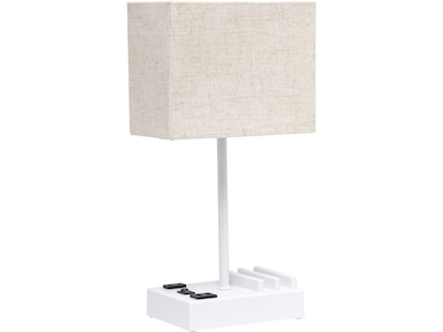 A classically styled table lamp with a modern twist. At Simple Designs, they love lighting with features, so this lamp is equipped with two USB ports and a charging outlet for your electronic devices. A lovely rectangular-shaped fabric shade pairs perfectly with the rectangular base. A few base and shade color combinations are available for purchase.