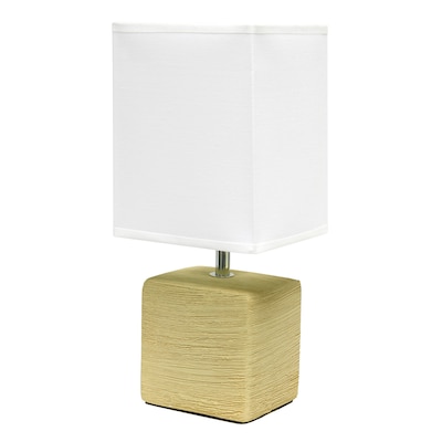 Clean and modern, this simple table lamp features a square faux stone base crafted from ceramic. The crisp, soft fabric shade adds a gentle touch to the textured base. Perfect for bedrooms, entryways, kids and teens, college dorms, nurseries, or offices!