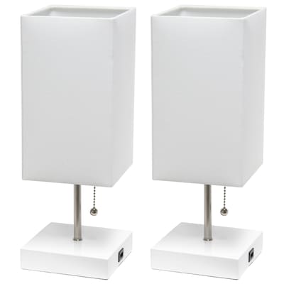 Simple Designs Petite White Stick Lamp with USB Charging Port and Fabric Shade, White, 2/Pack (LC2004-WOW-2PK)