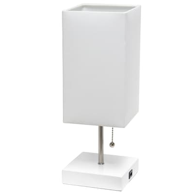 Simple Designs Petite White Stick Lamp with USB Charging Port and Fabric Shade, White (LT1088-WOW)