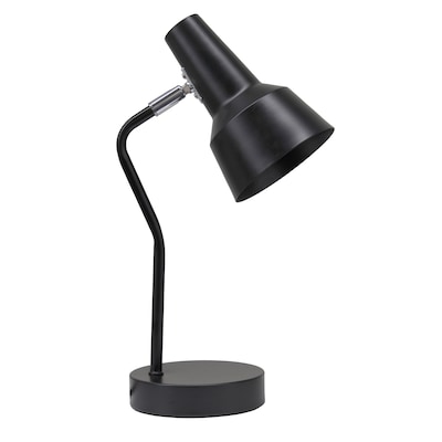 Simple Designs 15.2" Sleek Essentials Metal Cone Shade Desk Lamp with Adjustable Shade, for Office, Desk, Nightstand, Dorm, Black