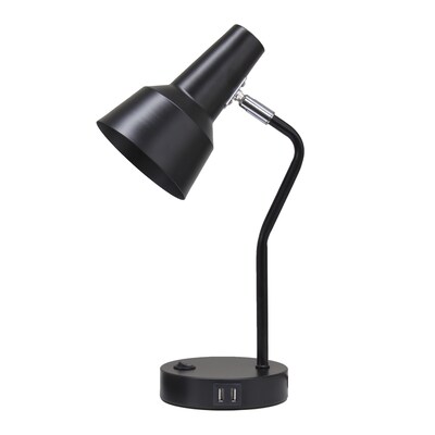 Simple Designs 15.2" Sleek Essentials Metal Cone Shade Desk Lamp with Adjustable Shade and Dual USB Ports, for Office, Desk, Nightstand, Dorm, Black
