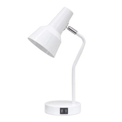 Simple Designs 15.2" Sleek Essentials Metal Cone Shade Desk Lamp with Adjustable Shade and Dual USB Ports, for Office, Desk, Nightstand, Dorm, White