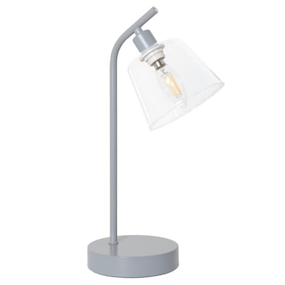 Simple Designs 16" Sleek Essentials Modern Industrial Metal Desk Lamp with Clear Glass Shade, for Office, Desk, Nightstand, Dorm, Gray