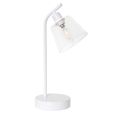 Simple Designs 16" Sleek Essentials Modern Industrial Metal Desk Lamp with Clear Glass Shade, for Office, Desk, Nightstand, Dorm, White
