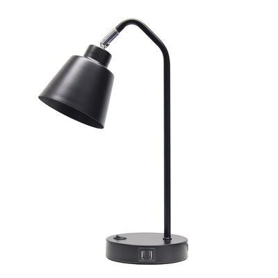 Simple Designs 16" Sleek Essentials Adjustable Metal Desk Task Lamp with Dual USB Ports, for Office, Desk, Nightstand, Dorm, Black