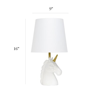Add a touch of personality to your décor with this fun unicorn lamp! With a white resin base and touches of shimmering gold glitter this lamp is sure to illuminate any room in style. Perfect for bedrooms, kids and teens, college dorms or nurseries!