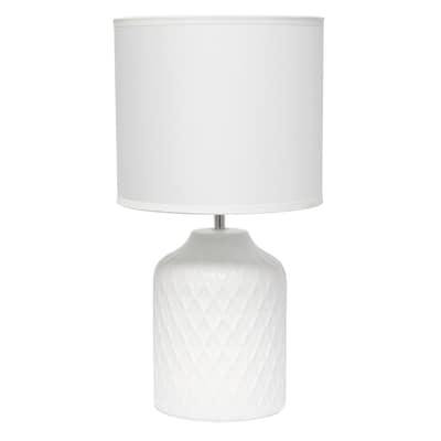 Simple Designs 17.25" Touch of Chevron Ceramic Table Lamp with Matching Drum Shade, White