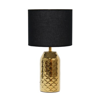 Simple Designs 13.4" Whimsical Wave Mini Porcelain Mermaid Fishscale Table Lamp, Gold with Black Shade