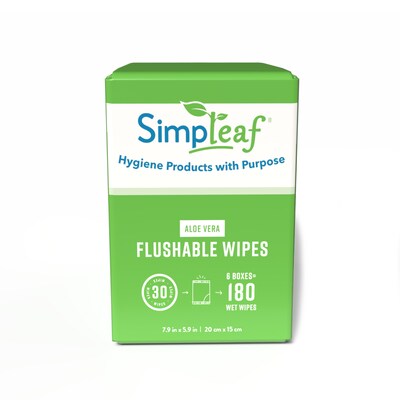 Simpleaf Aloe Vera Scented Flushable Wipes, 30 Single Wipes/Box, 6 Boxes/Carton (S-004-180counts)