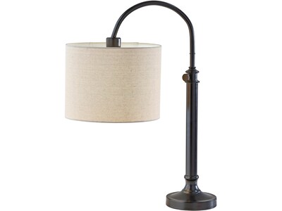 The Simplee Adesso Barton task table lamp's classic detailing and adjustable height make it a stylish and versatile addition to desks, end tables, and nightstands. With an antique bronze finish that complements Victorian, rustic, and transitional styles, the lamp features a round base and cylindrical tube body with subtle detailing. An arching stem supports an oatmeal-colored linen drum that softly diffuses the light from a 100W bulb (not included). The height of the lamp can be easily adjusted between 25" and 32" using the knob located on the tube, allowing you to customize the lamp height to your space.