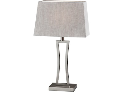 Create a modern matching look with the Simplee Adesso Camila table lamp. The lamp features a brushed steel open rectangular frame. Mimicking the rectangular shape of the base, the lamp shade is made of an eye-catching mixture of white and gray woven fabrics. At a 24.25"H, this lamp is a perfect fit for an end of the bedside or a console table. A simple rotary switch is located on the socket, controlling a 100W bulb (not included).