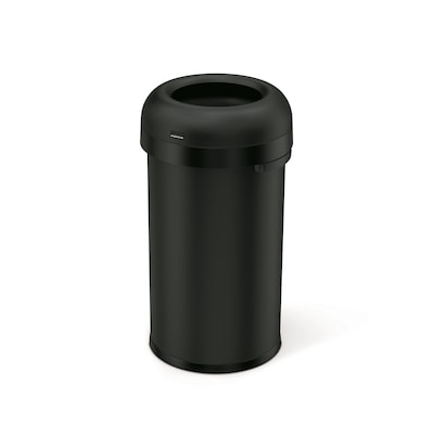 simplehuman Commercial Bullet Steel Trash Can with Open Lid, 16 Gallon, Matte Black (CW1496)