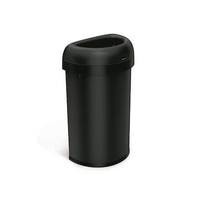 simplehuman Commercial Semi-Round Steel Trash Can with Open Lid, 16 Gallon, Matte Black (CW1497)