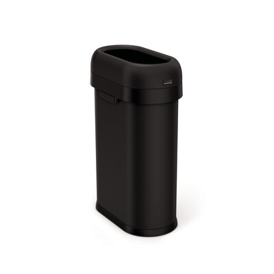 simplehuman Commercial Slim Steel Trash Can with Open Lid, 13 Gallon, Matte Black (CW1498)