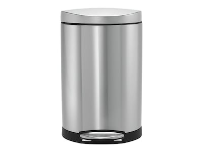 Maintain a tidy work space with this 2.6-gallon simplehuman stainless steel semi-round trash can.