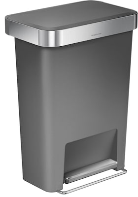 simplehuman Plastic Step Trash Can, Gray And Silver, 12 Gal. (CW1386)