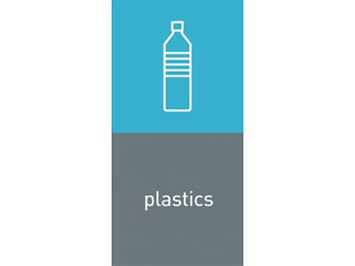 - Comes in gray and blue with the message Plastics and corresponding graphics in white
