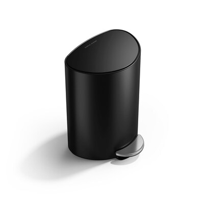 simplehuman Semi-Round Mini Steel Step Trash Can, 1.6 Gallon, Matte Black (CW2109)