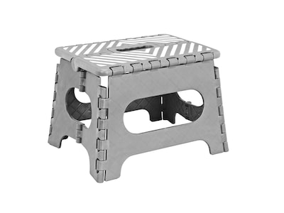 Bring an extra height boost with you by using this portable stool that folds flat for easy transport and storage. A flip-up handle provides a comfortable grip for carrying, and the 200-pound weight capacity accommodates a variety of physiques. This gray plastic Simplify step stool wipes clean for convenient maintenance.