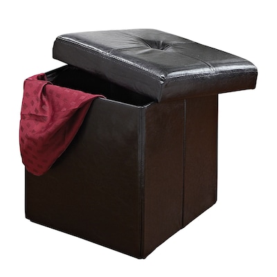 Simplify Single Folding Faux leather Ottoman, Black is a fold-able bench made of faux leather featuring a removable top that reveals a large storage area with a 100% non-woven liner. This 15" ottoman can hold up to 200 lbs..