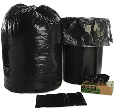 Skilcraft 55-60 Gallon Trash Bags with 100% PCR, 38" x 58", Low Density, 1.5 mil, Black, 20/Box (NSN5173668)