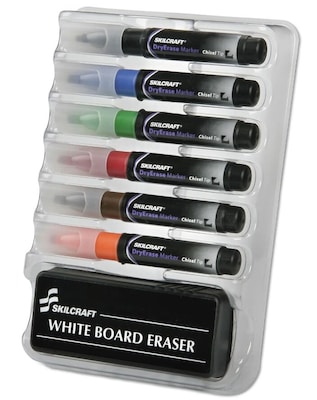 Skilcraft Dry Erase Marker Kit with Organizer, Chisel Tip, Assorted, 6/Kit (NSN3527321)