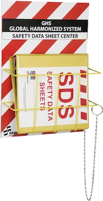 - Durable plastic board features bold print that reads "Safety Data Sheet Center" so it easily identifies SDS location in large, industrial areas