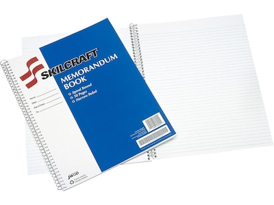 Keep track of meeting notes, lists or other information with this ruled notebook. The spiral binding allows for effortless page turns, while the narrow-ruled sheets keep handwriting neatly aligned. Each sheet features a spacious margin, providing room for title and subject information. This SKILCRAFT notebook includes a convenient form on the front cover, which lets you fill out the subject name, date and recipient for the notes stored inside.