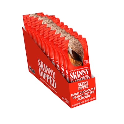 SKINNYDIPPED ALMONDS Lightly Salted Dark Chocolate Peanut Butter Covered Almonds, 1.2 oz., 10/Box (EDT00838)