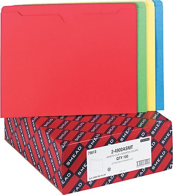 Smead 10% Recycled Reinforced File Jacket, Letter Size, Assorted, 100/Box (24900ASMT)