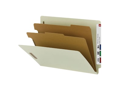 Organize customer or client files in these Smead 100 percent recycled pressboard end-tab classification folder. Durable fasteners on the front and back panels keep pages secure, and two interior dividers make it easy to locate and separate data by type. These Smead 100 percent recycled pressboard end-tab classification folders come in a set of 10, which ensures there are plenty on hand for busy offices.