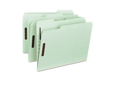 Organize documents with these Smead fastener letter-size file folders. The wide tabs in assorted positions allow for easy labeling, while the interior fasteners keep documents securely in place. Each folder expands up to 1 inch, providing ample storage space for large stacks of paperwork. Featuring sturdy pressboard construction, these Smead fastener letter-size file folders stand up to frequent wear and tear.