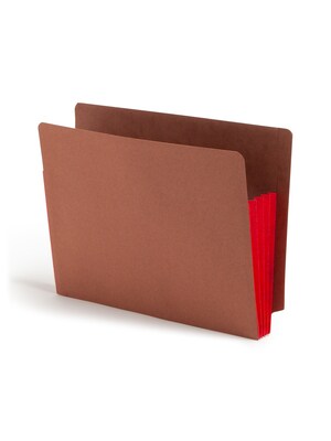 Store bulk stacks of paperwork in these letter-size file pockets. The end-tab design works with color-coded alpha-numeric labeling systems for easy filing, and the red tear-resistant gussets offer added strength while also making it easy to call attention to high-priority files. Crafted from sturdy redrope stock, these Smead end-tab file pockets stand up to frequent wear and tear.