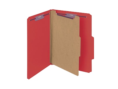 Smead 50% Recycled Classification Folders, 2" Expansion, Letter Size, 1 Divider, Bright Red, 10/Box