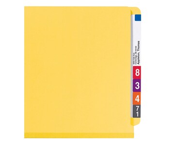 Locate documents quickly with these Smead legal 2-inch expansion two-divider yellow end tab pressboard classification SafeSHIELD fastener folders.