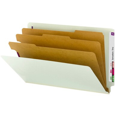 Smead 50% Recycled EndTab Pressboard Classification Folder, 3 Divider, 3" Expansion, Legal, Gray/Green, 10/Box