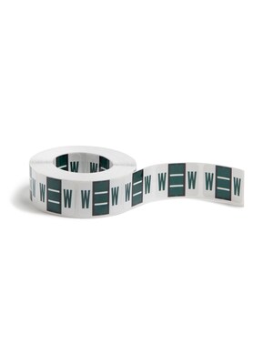 Smead BCCR Bar-Style Color-Coded Alphabetic Label, W, Label Roll, Dark Green, 500 labels per Roll, (67093)