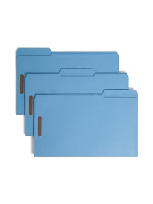 Prevent page loss in file cabinets and drawers with these Smead blue two-fastener reinforced 1/3-cut tab legal-size file folders. Find important paperwork quickly when you store documents in these legal-size file folders. Two filing surfaces with embedded fasteners keep pages securely in place, while the reinforced tabs stand up to frequent handling. The 1/3-cut assorted-position tab layout ensures labels remain easy to see. With a bright blue hue, these Smead two-fastener folders make it easy to color-code important papers.
