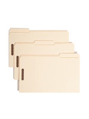 Get files in order with these legal-size two-fastener manila file folders. The 1/3-cut-tab design offers ample room for applying or handwriting labels, while the 11-point manila stock makes these folders durable. These Smead manila file folders come in a box of 50 and have two fasteners that hold documents firmly in place and let you subdivide them into major groups.