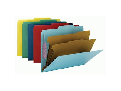 Keep files organized by using these pressboard classification file folders. Featuring SafeSHIELD coated fastener technology, these folders prevent paper tears, finger cuts, and fastener crinkling. Available in assorted colors, these file folders make color-coding documents easy. These Smead file folders can expand up to 2 inches, offering plenty of space for storing bulky stacks of paper.