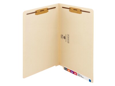 Keep documents organized with these Smead manila file folders. They are made with thick 11-point manila stock to provide the durability needed to protect important files, while the top-tab design allows for convenient indexing or color-coding among departments. These Smead manila file folders each have two fasteners to split your documents into multiple categories while securely holding papers.