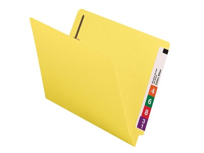Browse through documents easily with these letter-size green file folders. The two fasteners hold papers securely and let you split documents into separate groups, while the green coloring makes these folders a great addition to a color-coded filing system. These Smead Shelf-Master file folders come in a pack of 50 and have straight-cut tabs that provide plenty of space for labeling.
