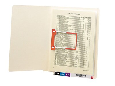 Store and subdivide your documents with these Staples manila file folders. These folders feature reinforced tabs for extra strength, while the straight-cut design allows for convenient color-coding and indexing. Each folder has a fastener inside for subdividing documents, and rounded corners help prevent snags and tears. These Smead straight-cut manila file folders are made from 11-point paper stock for the durability needed to protect important files.